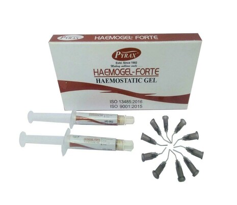 Haemo Gel “ Forte is a 25% Aluminium Chloride Gel with centimonium bromide for arresting minor gingival bleeding during dental procedures.